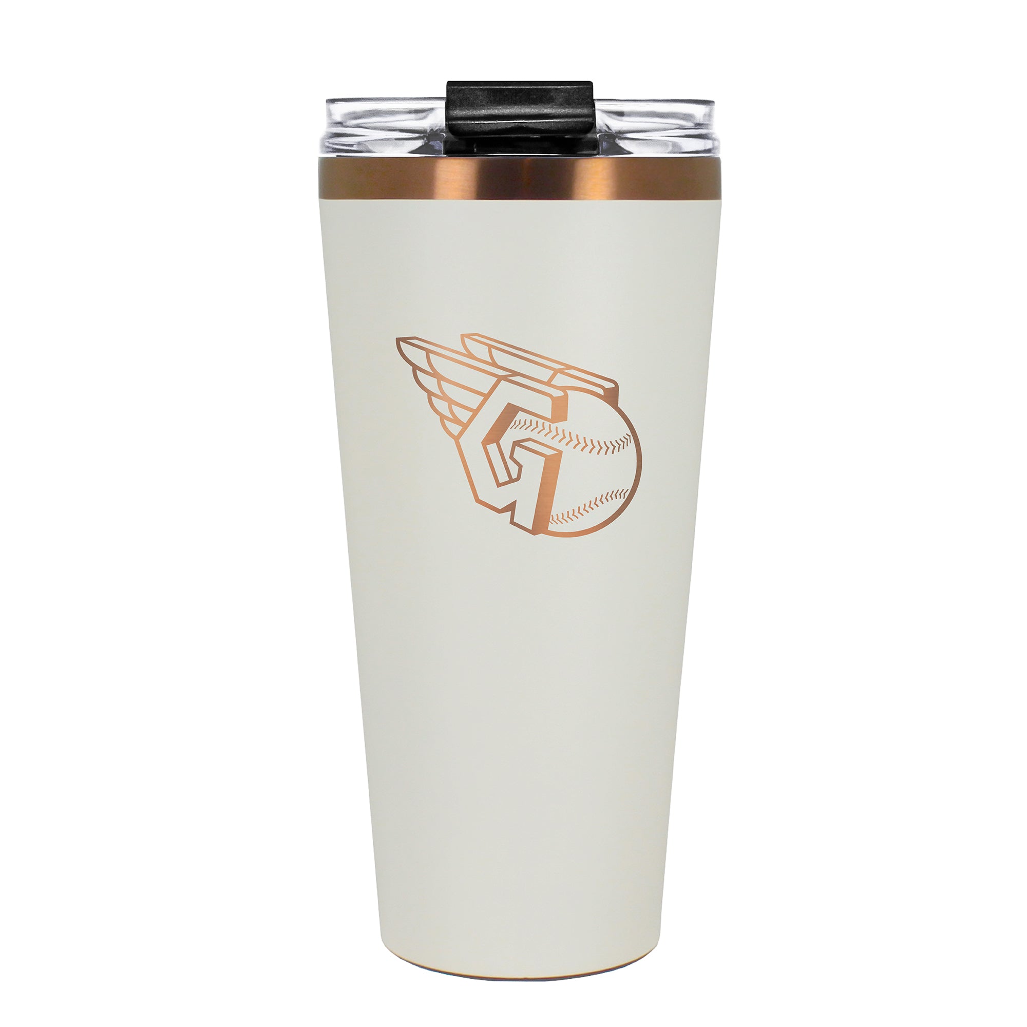 The 30 oz. BIG SLIM tumbler is made of high quality vacuum insulated stainless steel featuring premium copper undertones with a durable powder coated cream outer finish and laser etched team graphics. Includes a clear push down spill resistant lid and straw.