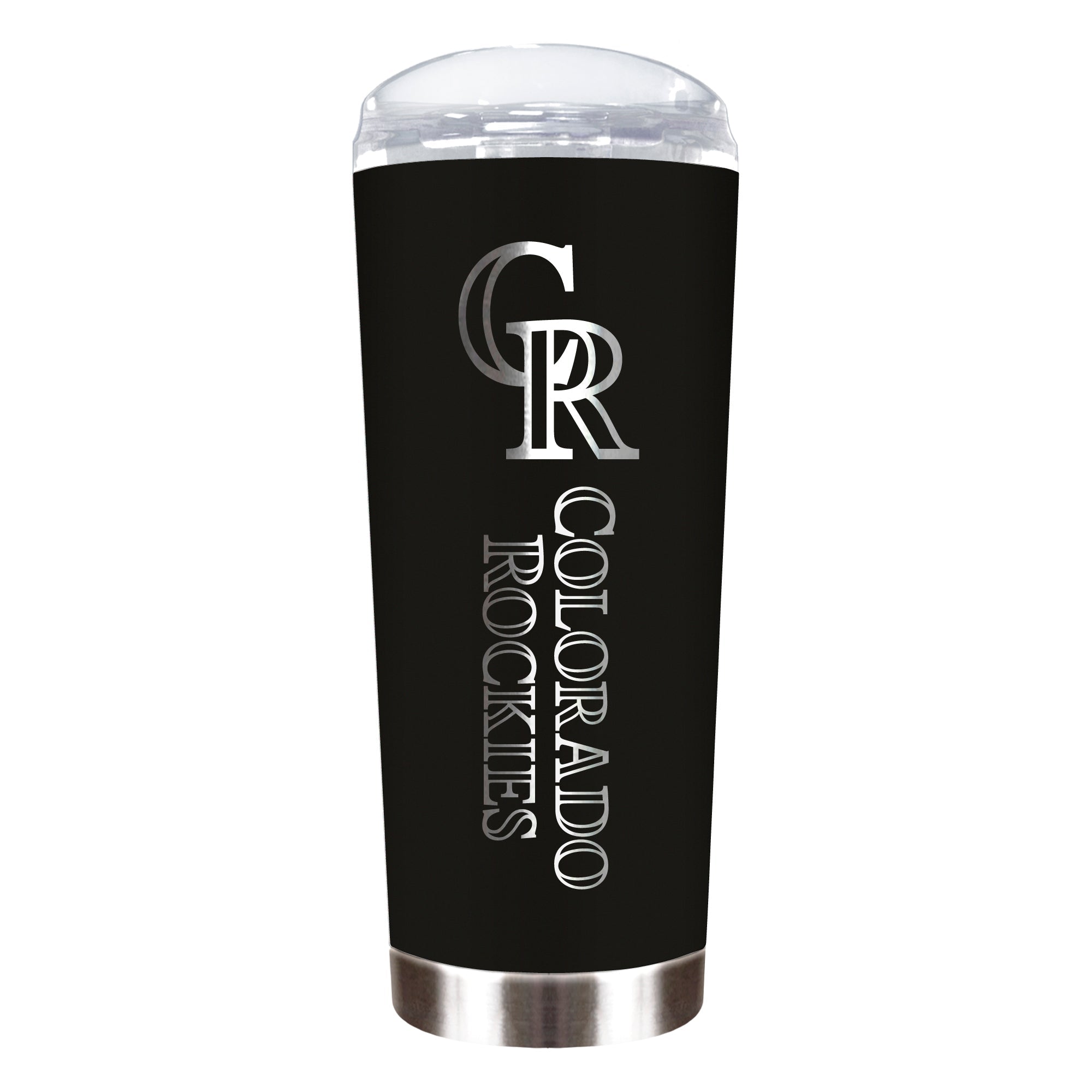 This 18 oz. Stealth ROADIE tumbler is vacuum insulated and features a team color powder coat finish with a laser engraved logo.