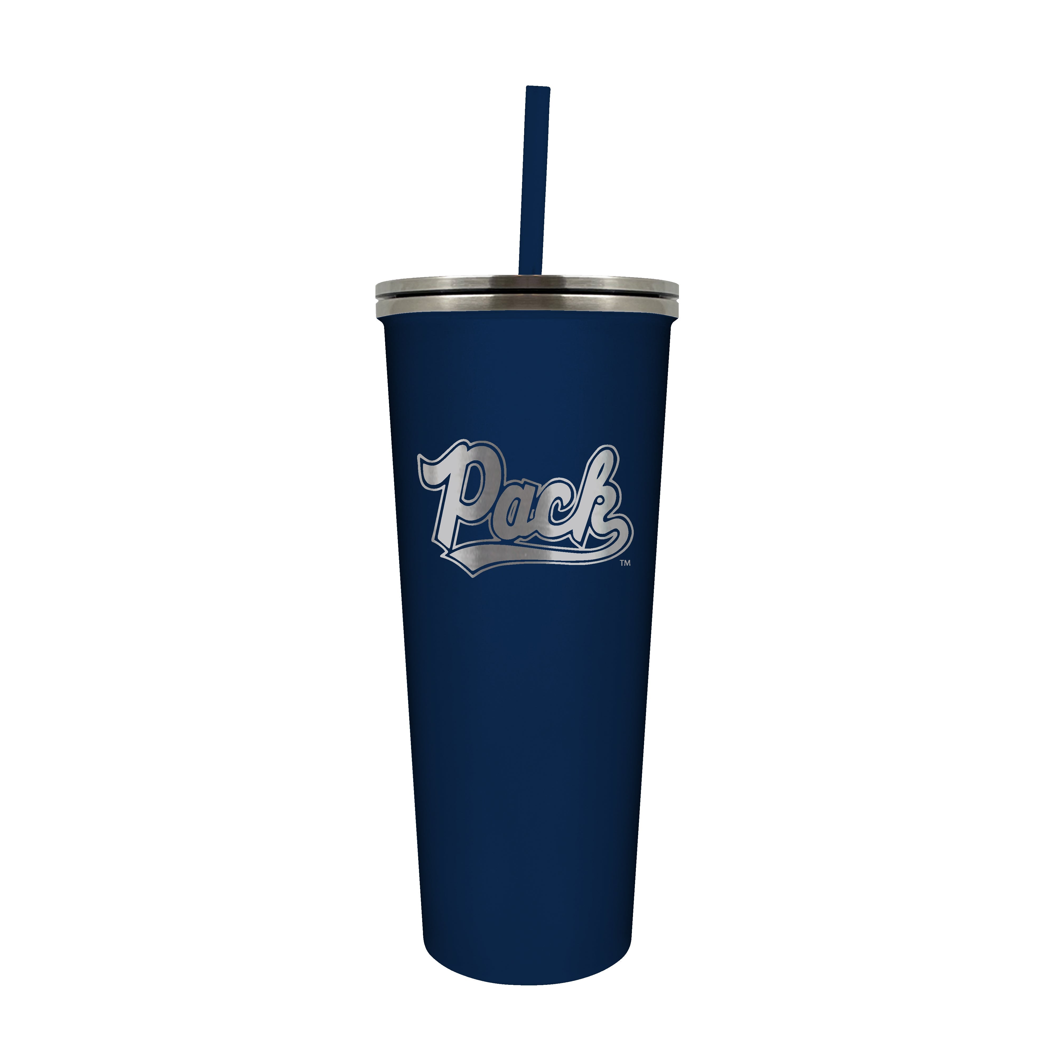 The 24 oz. SKINNY team colored tumbler is vacuum insulated and features a Laser Etched Licensed Team Logo. Includes a stainless steel push down lid and matching colored straw.