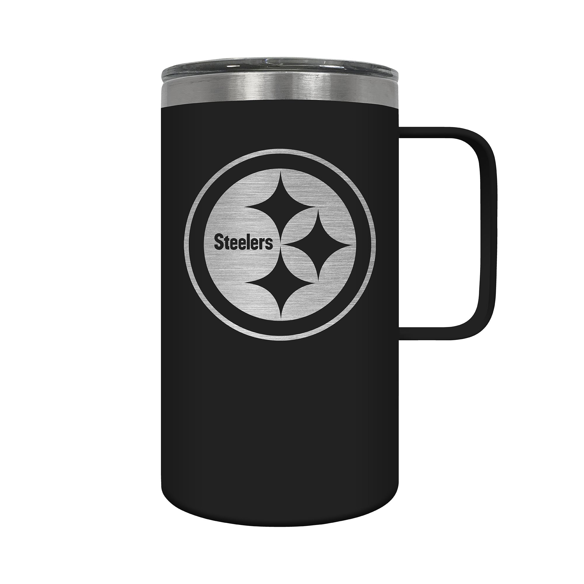 Pittsburgh Steelers 18 oz. HUSTLE Travel Mug - is backordered and will ship as soon as it is back in stock.