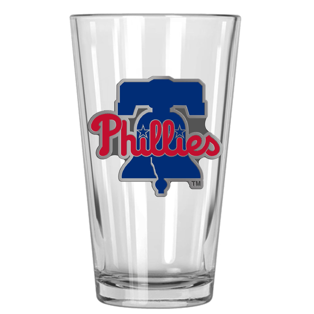 Philadelphia Phillies 16 oz. Pint Glass with Metal Emblem