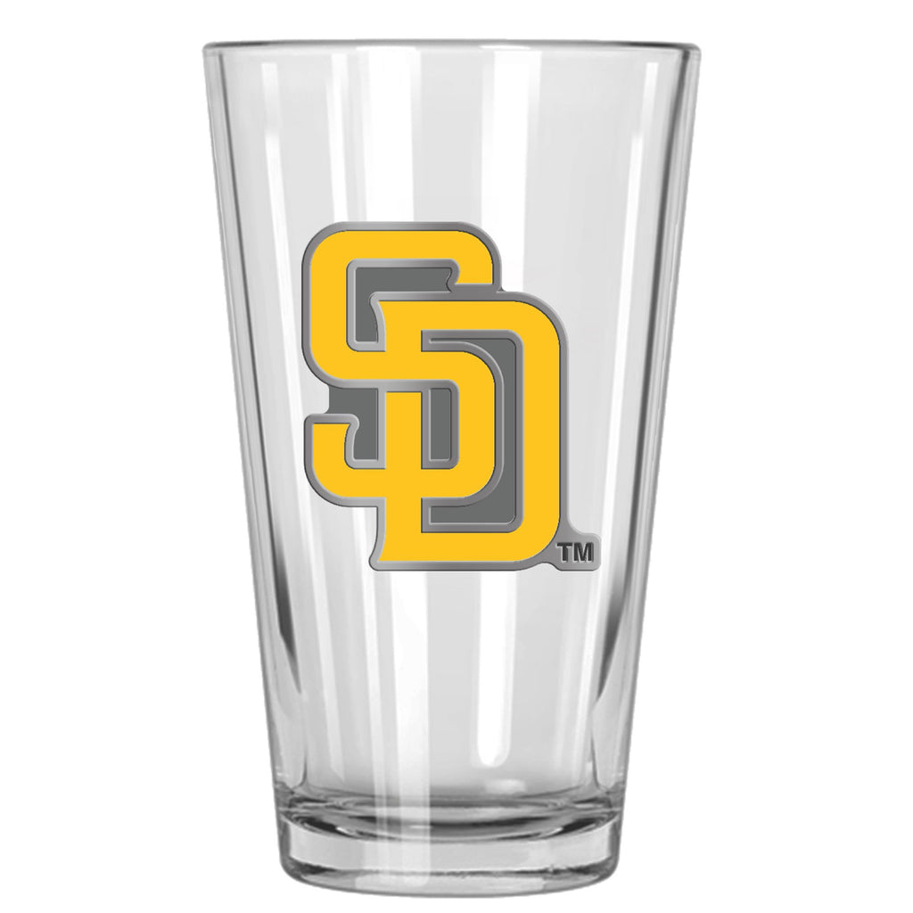 San Diego Padres 16 oz. Pint Glass with Metal Emblem