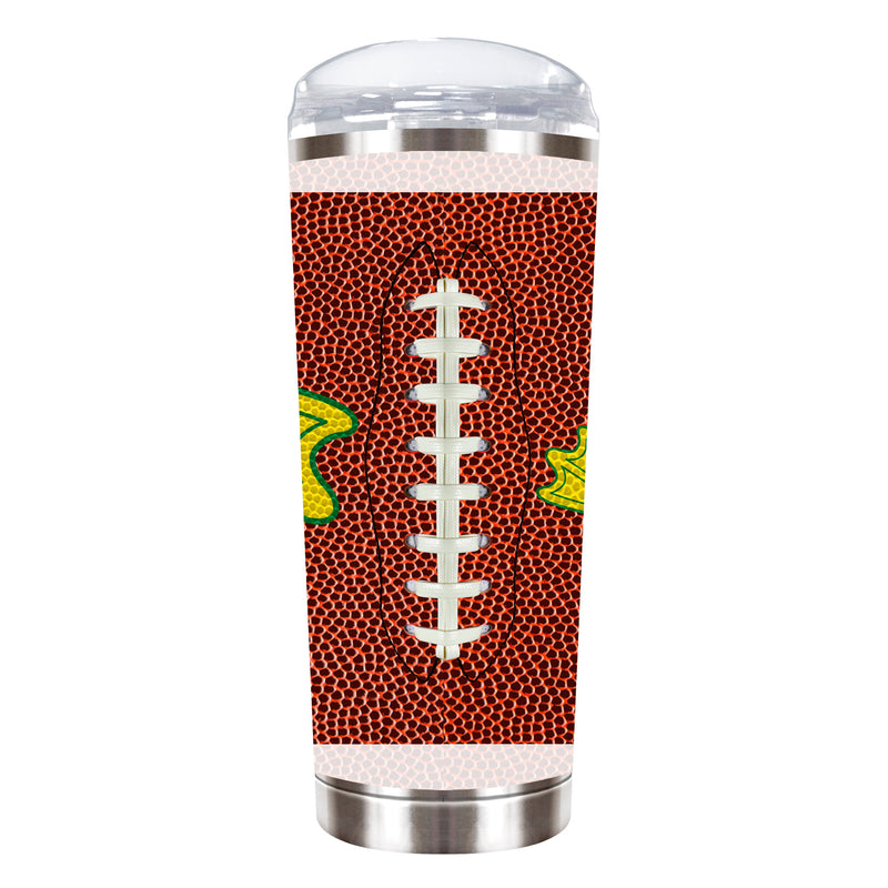 The Roadie is an 18 oz vacuum insulated stainless steel travel tumbler made of high quality stainless steel. It features 3D texturized gameball and team graphics.