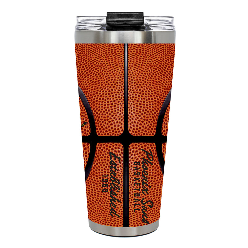 The 32 oz. BIG SLIM tumbler is made of high quality vacuum insulated stainless steel featuring 3D texturized team graphics. Includes a clear push down spill resistant lid and straw.