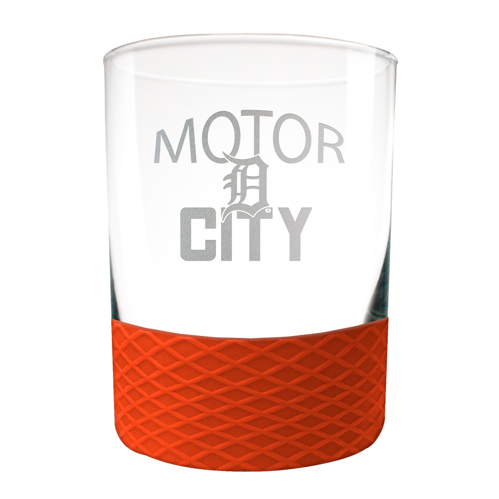 This 14 oz COMMISSIONER rocks glass is perfect for enjoying any beverage over ice. The glass is decorated with laser etched team graphics and team color coordinated silicone base