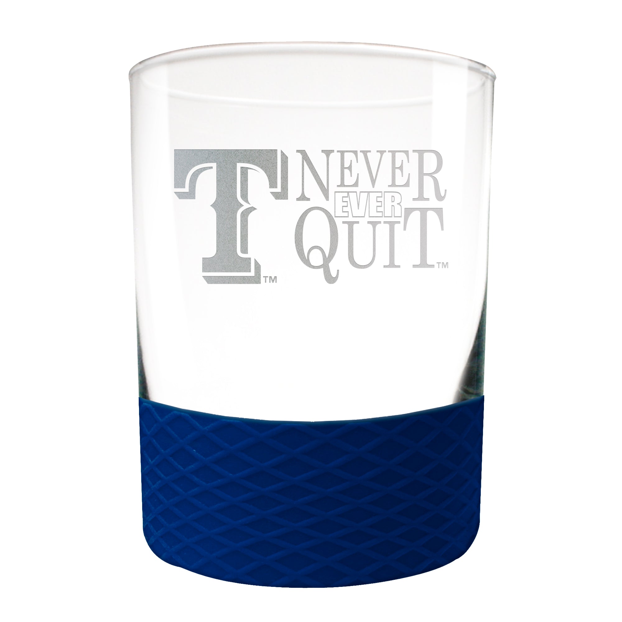 This 14 oz COMMISSIONER rocks glass is perfect for enjoying any beverage over ice. The glass is decorated with laser etched team graphics and team color coordinated silicone base