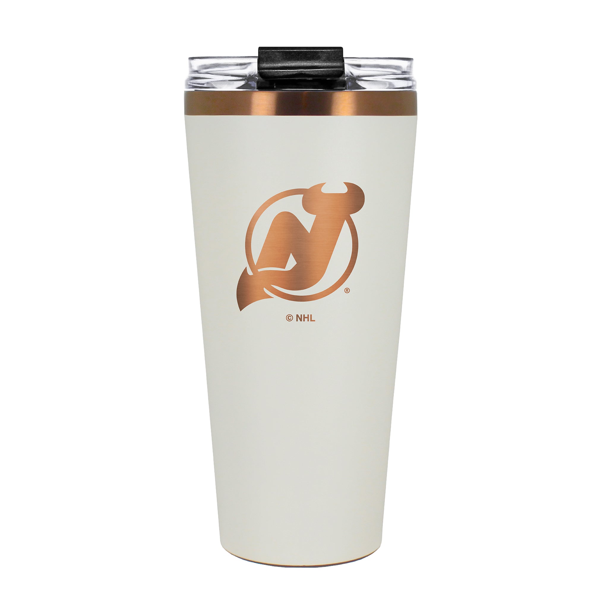 The 30 oz. BIG SLIM tumbler is made of high quality vacuum insulated stainless steel featuring premium copper undertones with a durable powder coated cream outer finish and laser etched team graphics. Includes a clear push down spill resistant lid and straw.